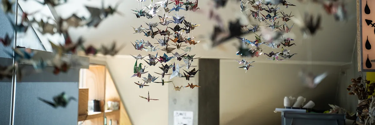 Tranen er et helligt dyr i Japan og symbol på lykke og held. Hver onsdag foldes der Traner i Verdensrummet på Dokk1.
