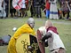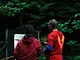 Vagtskiftet ved Marselisborg Slot skærtorsdag kl. 12 tiltrak mange fremmødte, mens politiets indsatsleder undervejs tog sig tid til at besvare spørgsmål fra en nysgerrig dreng.