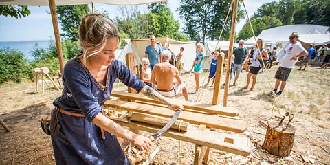 600 lokale og internationale vikinger kæmpede mod hinanden på solbeskinnet kampplads ved Moesgaard.