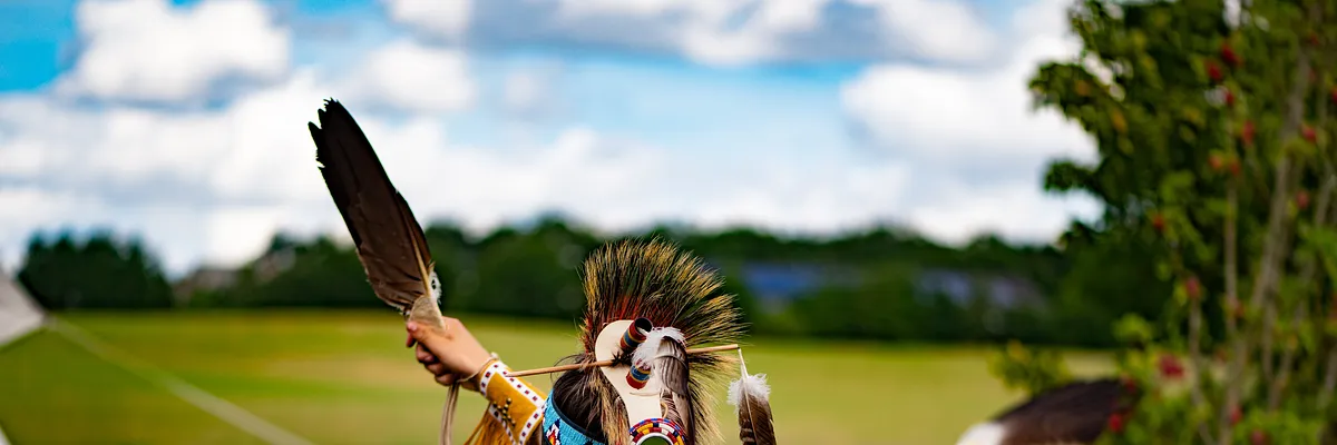 Indiansk dansefest i naturskønne omgivelser med tipier, bål og lyden af trommer. Dansedragterne er omhyggeligt udformet efter original, indiansk tradition.