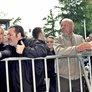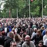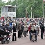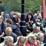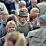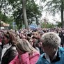 Vagtskiftet ved Marselisborg Slot skærtorsdag kl. 12 tiltrak mange fremmødte, mens politiets indsatsleder undervejs tog sig tid til at besvare spørgsmål fra en nysgerrig dreng.