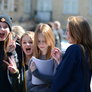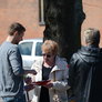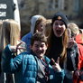 Vagtskiftet ved Marselisborg Slot skærtorsdag kl. 12 tiltrak mange fremmødte, mens politiets indsatsleder undervejs tog sig tid til at besvare spørgsmål fra en nysgerrig dreng.