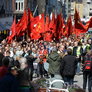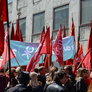 Årets 1. maj demonstration på Rådhuspladsen blev en våd omgang.....