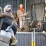 Vagtskiftet ved Marselisborg Slot skærtorsdag kl. 12 tiltrak mange fremmødte, mens politiets indsatsleder undervejs tog sig tid til at besvare spørgsmål fra en nysgerrig dreng.