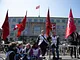 1. maj - Arbejdernes Internationale Kampdag, blev atter fejret på Havnepladsen i Aarhus, med røde faner, taler og god musik, .