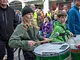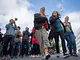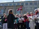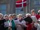 Vagtskiftet ved Marselisborg Slot skærtorsdag kl. 12 tiltrak mange fremmødte, mens politiets indsatsleder undervejs tog sig tid til at besvare spørgsmål fra en nysgerrig dreng.