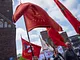 Årets 1. maj demonstration på Rådhuspladsen blev en våd omgang.....