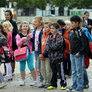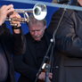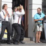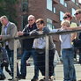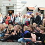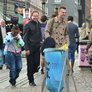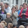 Vagtskiftet ved Marselisborg Slot skærtorsdag kl. 12 tiltrak mange fremmødte, mens politiets indsatsleder undervejs tog sig tid til at besvare spørgsmål fra en nysgerrig dreng.