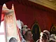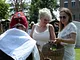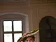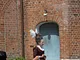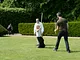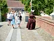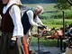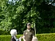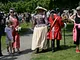 Vagtskiftet ved Marselisborg Slot skærtorsdag kl. 12 tiltrak mange fremmødte, mens politiets indsatsleder undervejs tog sig tid til at besvare spørgsmål fra en nysgerrig dreng.