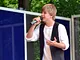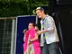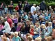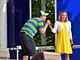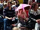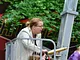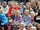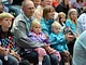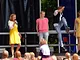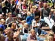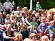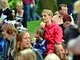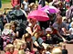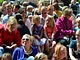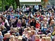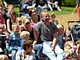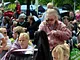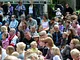 Vagtskiftet ved Marselisborg Slot skærtorsdag kl. 12 tiltrak mange fremmødte, mens politiets indsatsleder undervejs tog sig tid til at besvare spørgsmål fra en nysgerrig dreng.