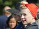 Vagtskiftet ved Marselisborg Slot skærtorsdag kl. 12 tiltrak mange fremmødte, mens politiets indsatsleder undervejs tog sig tid til at besvare spørgsmål fra en nysgerrig dreng.