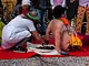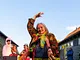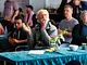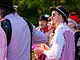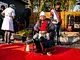 Vagtskiftet ved Marselisborg Slot skærtorsdag kl. 12 tiltrak mange fremmødte, mens politiets indsatsleder undervejs tog sig tid til at besvare spørgsmål fra en nysgerrig dreng.