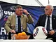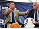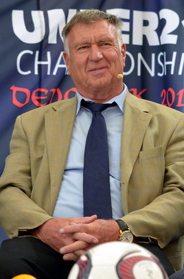Sepp Piontek og Frits Ahlstrøm mødtes til en fodboldsnak på Bispetorv i Aarhus i forbindelse med U21 EM i fodbold.