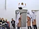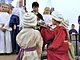 Vagtskiftet ved Marselisborg Slot skærtorsdag kl. 12 tiltrak mange fremmødte, mens politiets indsatsleder undervejs tog sig tid til at besvare spørgsmål fra en nysgerrig dreng.