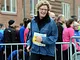 Vagtskiftet ved Marselisborg Slot skærtorsdag kl. 12 tiltrak mange fremmødte, mens politiets indsatsleder undervejs tog sig tid til at besvare spørgsmål fra en nysgerrig dreng.