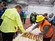 Vagtskiftet ved Marselisborg Slot skærtorsdag kl. 12 tiltrak mange fremmødte, mens politiets indsatsleder undervejs tog sig tid til at besvare spørgsmål fra en nysgerrig dreng.