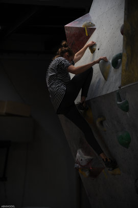Der blev trænet armmuskler og motorik på klatrevæggen hos Aarhus Boulders. Klatreklubben har existeret i knap to år og får jævn tilgang af nye medlemmer. Her kan man dyrke en usædvanlig for for motion inden for sikre rammer. Det er bl.a den afslappede atmosfære og det sociale der trækker.
