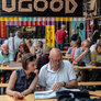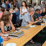 Vagtskiftet ved Marselisborg Slot skærtorsdag kl. 12 tiltrak mange fremmødte, mens politiets indsatsleder undervejs tog sig tid til at besvare spørgsmål fra en nysgerrig dreng.