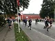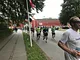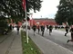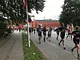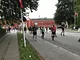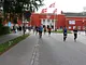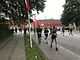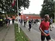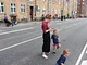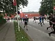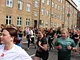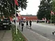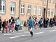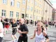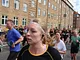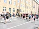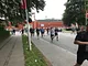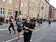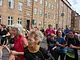 Vagtskiftet ved Marselisborg Slot skærtorsdag kl. 12 tiltrak mange fremmødte, mens politiets indsatsleder undervejs tog sig tid til at besvare spørgsmål fra en nysgerrig dreng.
