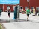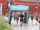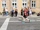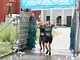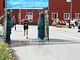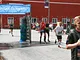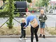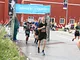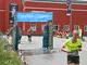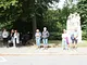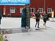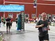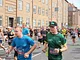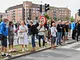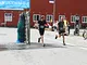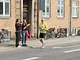 Vagtskiftet ved Marselisborg Slot skærtorsdag kl. 12 tiltrak mange fremmødte, mens politiets indsatsleder undervejs tog sig tid til at besvare spørgsmål fra en nysgerrig dreng.
