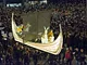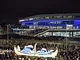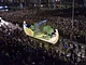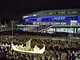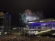 Officiel åbning af Aarhus som Europæisk Kulturhovedstad 2017. Optog og lysshow set fra Hotel Atlantic mod Mindet.
