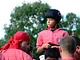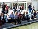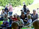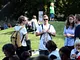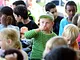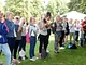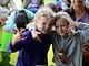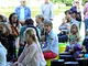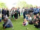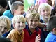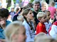 Vagtskiftet ved Marselisborg Slot skærtorsdag kl. 12 tiltrak mange fremmødte, mens politiets indsatsleder undervejs tog sig tid til at besvare spørgsmål fra en nysgerrig dreng.