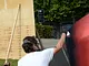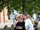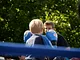 Vagtskiftet ved Marselisborg Slot skærtorsdag kl. 12 tiltrak mange fremmødte, mens politiets indsatsleder undervejs tog sig tid til at besvare spørgsmål fra en nysgerrig dreng.