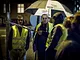 Vagtskiftet ved Marselisborg Slot skærtorsdag kl. 12 tiltrak mange fremmødte, mens politiets indsatsleder undervejs tog sig tid til at besvare spørgsmål fra en nysgerrig dreng.
