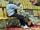 Vagtskiftet ved Marselisborg Slot skærtorsdag kl. 12 tiltrak mange fremmødte, mens politiets indsatsleder undervejs tog sig tid til at besvare spørgsmål fra en nysgerrig dreng.