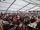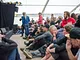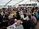 Vagtskiftet ved Marselisborg Slot skærtorsdag kl. 12 tiltrak mange fremmødte, mens politiets indsatsleder undervejs tog sig tid til at besvare spørgsmål fra en nysgerrig dreng.