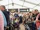 Vagtskiftet ved Marselisborg Slot skærtorsdag kl. 12 tiltrak mange fremmødte, mens politiets indsatsleder undervejs tog sig tid til at besvare spørgsmål fra en nysgerrig dreng.