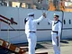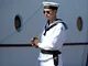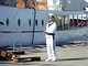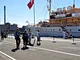 Vagtskiftet ved Marselisborg Slot skærtorsdag kl. 12 tiltrak mange fremmødte, mens politiets indsatsleder undervejs tog sig tid til at besvare spørgsmål fra en nysgerrig dreng.