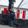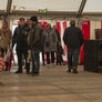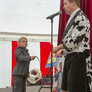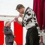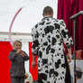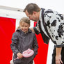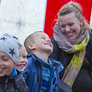 Vagtskiftet ved Marselisborg Slot skærtorsdag kl. 12 tiltrak mange fremmødte, mens politiets indsatsleder undervejs tog sig tid til at besvare spørgsmål fra en nysgerrig dreng.