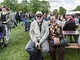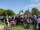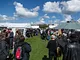 Vagtskiftet ved Marselisborg Slot skærtorsdag kl. 12 tiltrak mange fremmødte, mens politiets indsatsleder undervejs tog sig tid til at besvare spørgsmål fra en nysgerrig dreng.