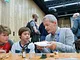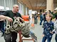 Vagtskiftet ved Marselisborg Slot skærtorsdag kl. 12 tiltrak mange fremmødte, mens politiets indsatsleder undervejs tog sig tid til at besvare spørgsmål fra en nysgerrig dreng.