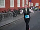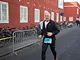 Vagtskiftet ved Marselisborg Slot skærtorsdag kl. 12 tiltrak mange fremmødte, mens politiets indsatsleder undervejs tog sig tid til at besvare spørgsmål fra en nysgerrig dreng.