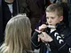 Vagtskiftet ved Marselisborg Slot skærtorsdag kl. 12 tiltrak mange fremmødte, mens politiets indsatsleder undervejs tog sig tid til at besvare spørgsmål fra en nysgerrig dreng.