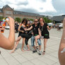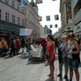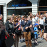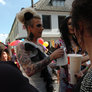Vagtskiftet ved Marselisborg Slot skærtorsdag kl. 12 tiltrak mange fremmødte, mens politiets indsatsleder undervejs tog sig tid til at besvare spørgsmål fra en nysgerrig dreng.
