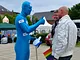 Vagtskiftet ved Marselisborg Slot skærtorsdag kl. 12 tiltrak mange fremmødte, mens politiets indsatsleder undervejs tog sig tid til at besvare spørgsmål fra en nysgerrig dreng.