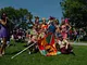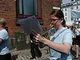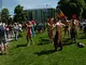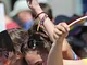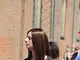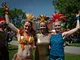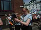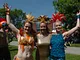 Vagtskiftet ved Marselisborg Slot skærtorsdag kl. 12 tiltrak mange fremmødte, mens politiets indsatsleder undervejs tog sig tid til at besvare spørgsmål fra en nysgerrig dreng.