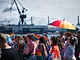Vagtskiftet ved Marselisborg Slot skærtorsdag kl. 12 tiltrak mange fremmødte, mens politiets indsatsleder undervejs tog sig tid til at besvare spørgsmål fra en nysgerrig dreng.
