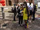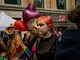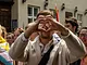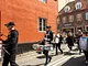 Vagtskiftet ved Marselisborg Slot skærtorsdag kl. 12 tiltrak mange fremmødte, mens politiets indsatsleder undervejs tog sig tid til at besvare spørgsmål fra en nysgerrig dreng.