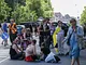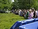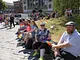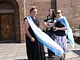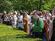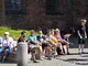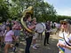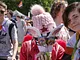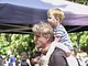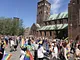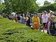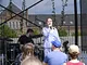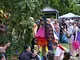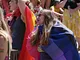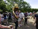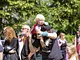 Vagtskiftet ved Marselisborg Slot skærtorsdag kl. 12 tiltrak mange fremmødte, mens politiets indsatsleder undervejs tog sig tid til at besvare spørgsmål fra en nysgerrig dreng.