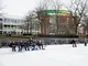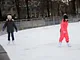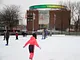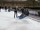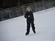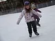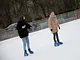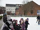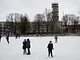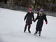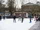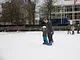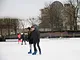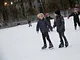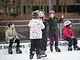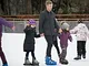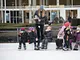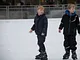 Der skøjtes på livet løs i parken foran Musikhuset. Også i dag, hvor der var mange børn, som udfordrede isen og dens glatte luner. glatte is. Ikke altid lige nemt, men udfordringerne blev taget med godt humør.