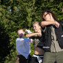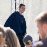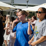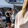 Vagtskiftet ved Marselisborg Slot skærtorsdag kl. 12 tiltrak mange fremmødte, mens politiets indsatsleder undervejs tog sig tid til at besvare spørgsmål fra en nysgerrig dreng.