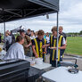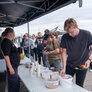 Vagtskiftet ved Marselisborg Slot skærtorsdag kl. 12 tiltrak mange fremmødte, mens politiets indsatsleder undervejs tog sig tid til at besvare spørgsmål fra en nysgerrig dreng.