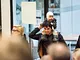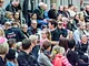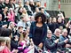 Vagtskiftet ved Marselisborg Slot skærtorsdag kl. 12 tiltrak mange fremmødte, mens politiets indsatsleder undervejs tog sig tid til at besvare spørgsmål fra en nysgerrig dreng.