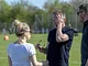 Vagtskiftet ved Marselisborg Slot skærtorsdag kl. 12 tiltrak mange fremmødte, mens politiets indsatsleder undervejs tog sig tid til at besvare spørgsmål fra en nysgerrig dreng.