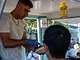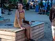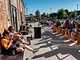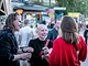 Vagtskiftet ved Marselisborg Slot skærtorsdag kl. 12 tiltrak mange fremmødte, mens politiets indsatsleder undervejs tog sig tid til at besvare spørgsmål fra en nysgerrig dreng.