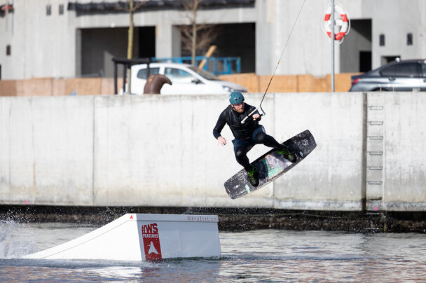 Frygtløse vovehalse og modige nybegyndere lavede flotte tricks på deres Wakeboards ved kabelbanerne i Bassin 7, end ikke en vandtemperatur på kun 8°C kan holde vandsportsfolkene på land.
